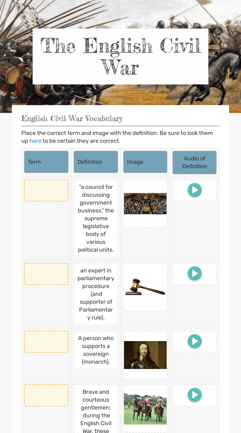 Civil War Vocabulary Worksheet / History Vocabulary In English With Games Puzzles And Memory Cards /. Hundreds of pdf lesson plans. This civil war vocabulary word mat will support older students as they discuss and write about the civil war. A person who fought to end slavery. Word of the day thinkboard worksheet. You can do the exercises online or download the worksheet as pdf.